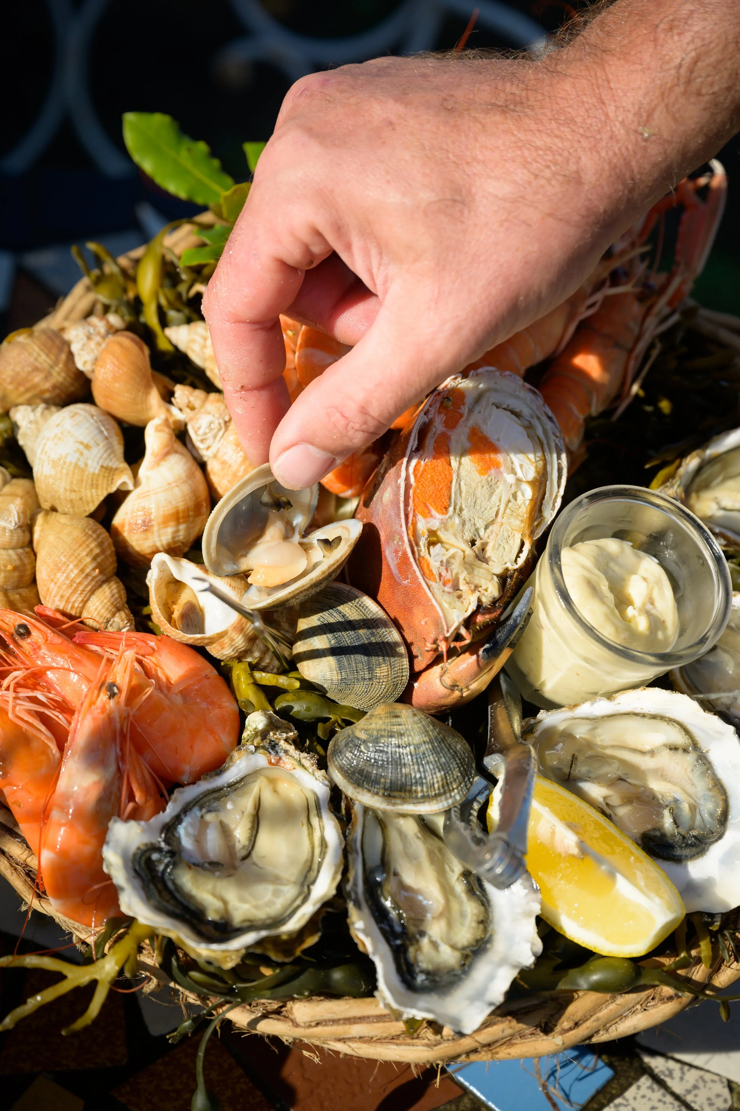 Dans une ambiance détendue, avec des huîtres, crevettes, pâté, moules à la plancha, boissons et glaces. Le service se fait au comptoir.